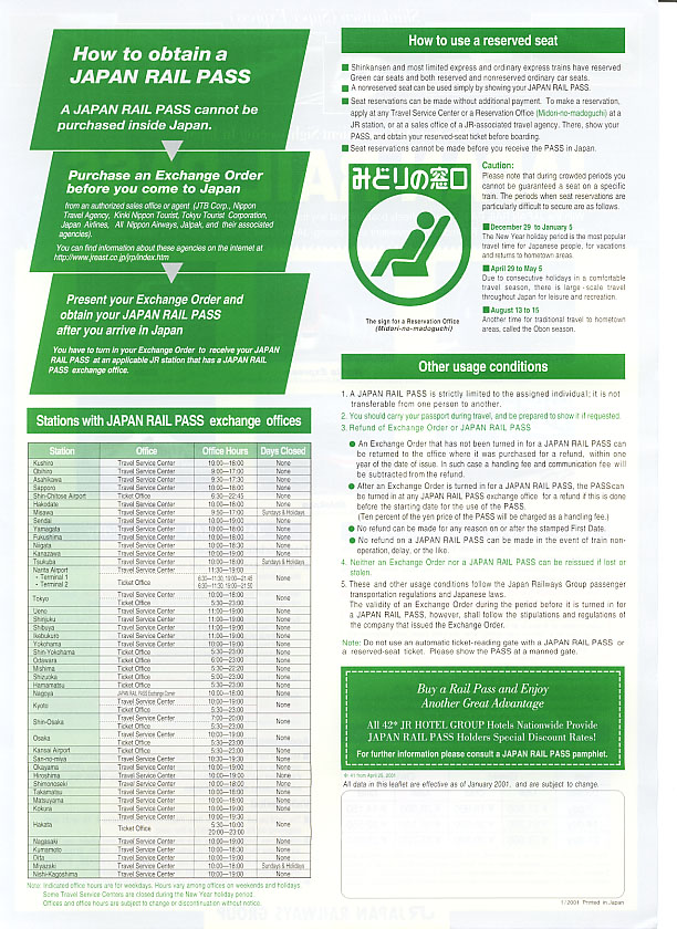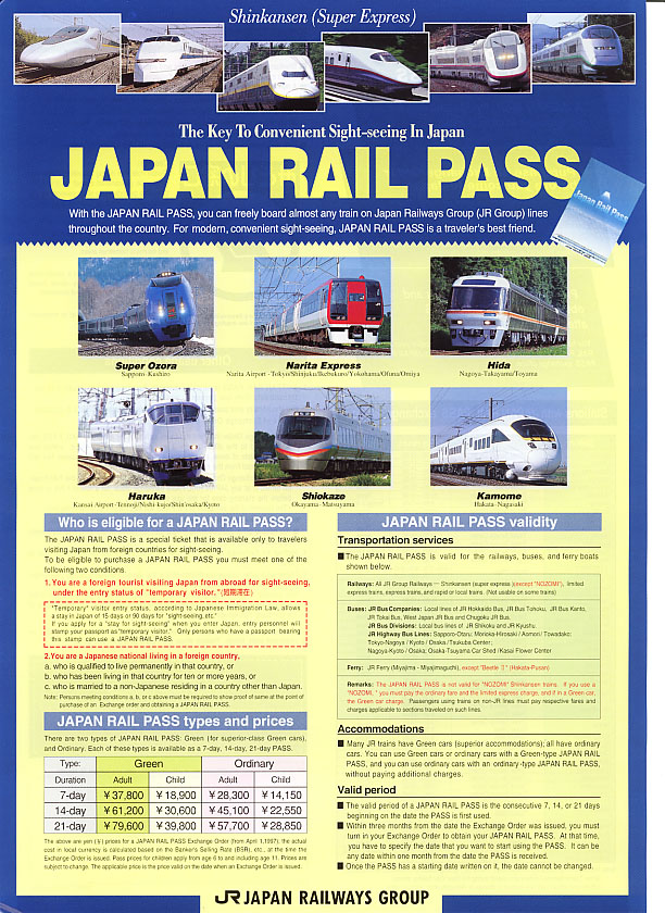 passes, for example a 4 day pass from Osaka to Hakata in Western Japan